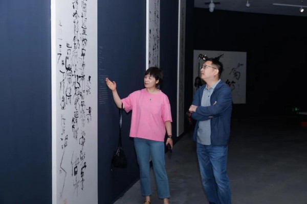 顾邨言认为,“生长”是理解本次展览的关键。石虎先生是一位非常率真而真诚的艺术家,正如他2013年展览所体现的那种摒弃繁文缛节的纯粹态度。本次展览切入了其创作的另一种状态——石虎从绘画技法进入对书法的探索,他既是不断叛逆自我的先锋,也是中国文化的捍卫者。展厅中,传统手稿与墙上极具当代性的书法作品并置,正体现了这种“生长”:它不是僵化的结果,而是一个流动、不断生成的过程。“石虎书”带来一种再生感,让观众感受到他悬腕挥毫的率性,这正是文脉的积蓄以及持续的生长性!