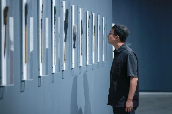 朱友舟表示,“作为南艺书法系的教师,我认为本次展览对书法学科建设具有重要启示。书法学被列为国家一级学科,参照中文一级学科下设古代文学、现当代文学等二级学科的体系,书法学或可考虑设置‘古典书法’与‘现当代书法’方向,而石虎先生的创作正可作为现当代书法的典型个案”。朱友舟认为,展览特别展出了石虎先生自制的多种毛笔,令他深有感触。传统制笔讲究“尖齐圆健”的实用标准,而石虎先生却反其道而行——他追求“健”,却突破“尖齐圆”的束缚,采用竹纤维、草纤维等硬质材料制笔,创造出丰富的线条效果。这种对工具的革新体现了他“回归造笔之初”的理念:唯有改变工具,才能解放笔法,进而展现当代人对线条与空间的独特理解。