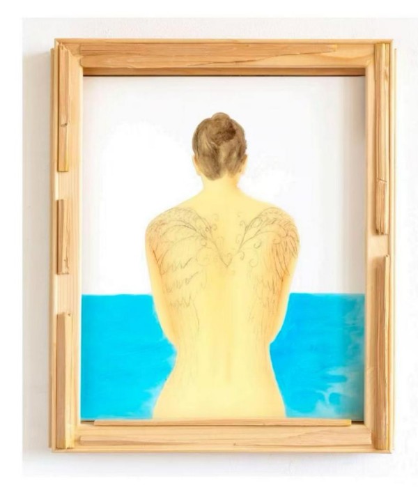 Oil and medium acrylic on canvas, two frames and wooden strips – 65 x 55 x 7 cm,(painting 2016, frame 2022)