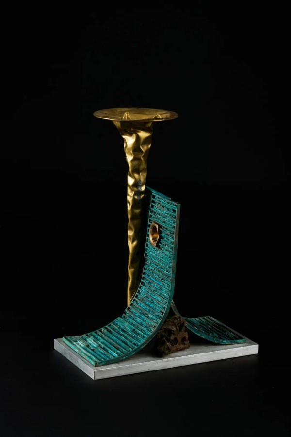 云崖际-系列之23 ,装置,2025年,铜喇叭、太湖石、铸铜、铝板